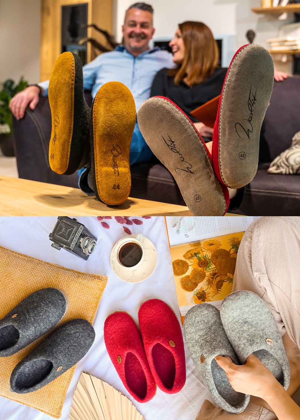 Zuhause ist, wo Deine WoolFits sind – gemütliche Filzpantoffeln aus 100 % Wolle.
