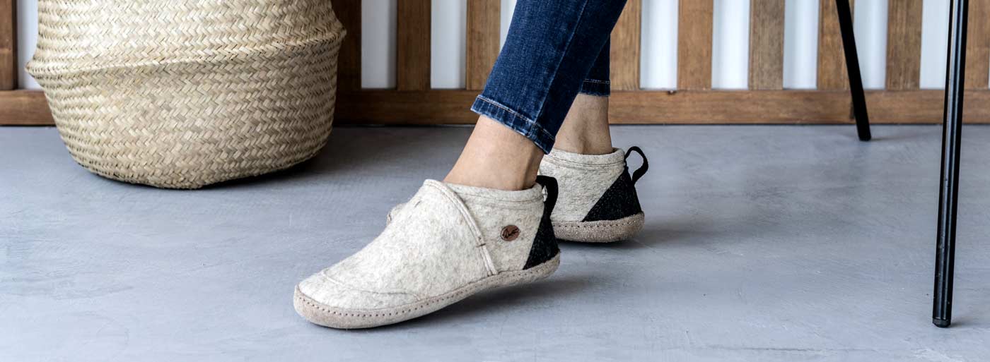 - Bei diesem Modell haben wir zudem bewusst auf Einlagen & Fußbetten verzichtet, um die Füße beim Gehen in keinster Weise in ihren natürlichen Bewegungsabläufen einzuschränken. Dadurch sorgen unsere 'Nomad' Hüttenschuhe für ein herrlich leichtfüßiges, natürliches Barfuß-Laufgefühl.