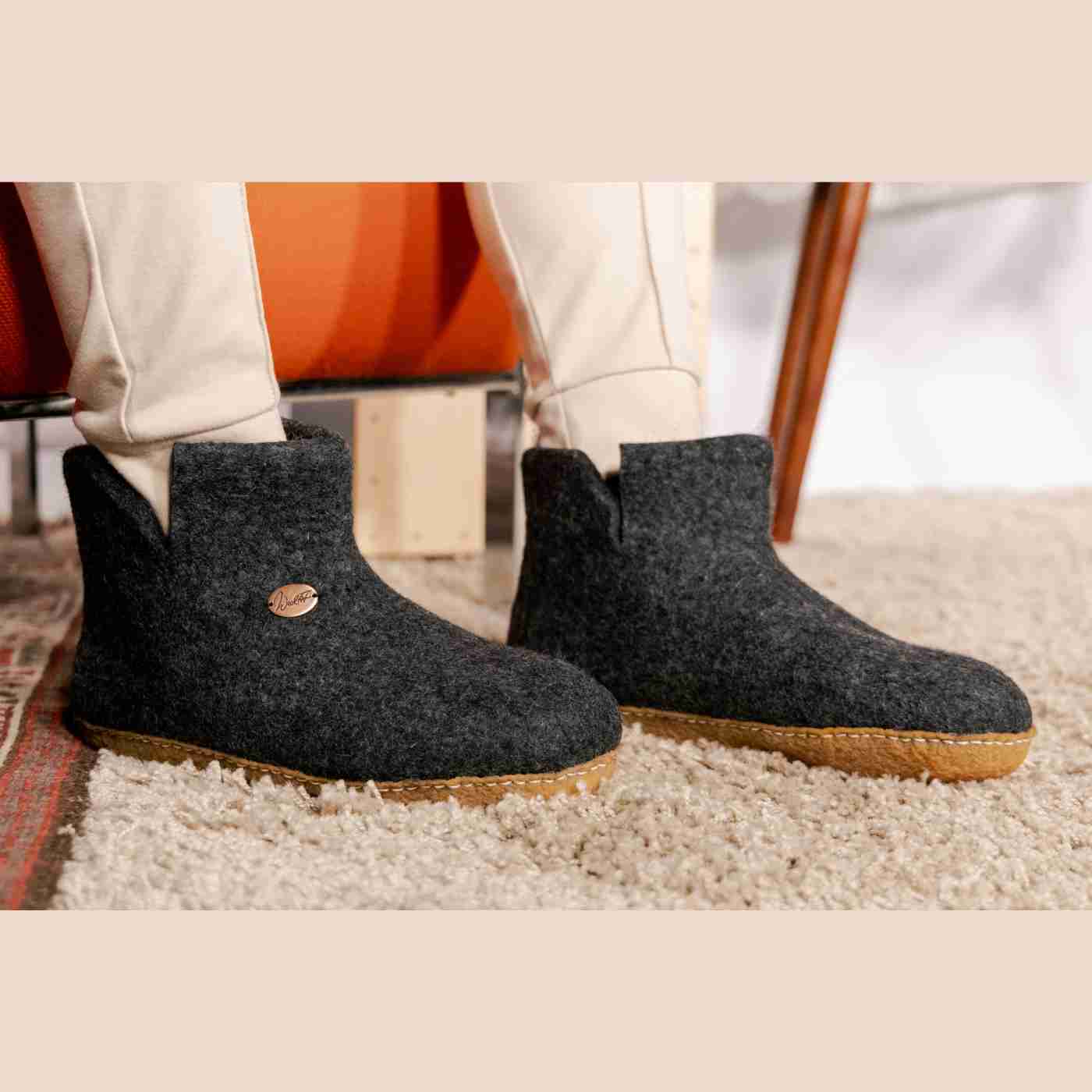 Dieser knöchelhohe Hausschuh ist perfekt für diejenigen, die chronisch kalte Füße haben und sich nach einer Extraportion Wärme sehnen. Der Yeti ist ein großartiger Begleiter für kalte Tage, da er dich optimal vor Bodenkälte isoliert. Sein dickes, handgefilztes Filzmaterial sorgt dafür, dass deine Füße warm und gemütlich bleiben, selbst wenn es draußen eisig ist.