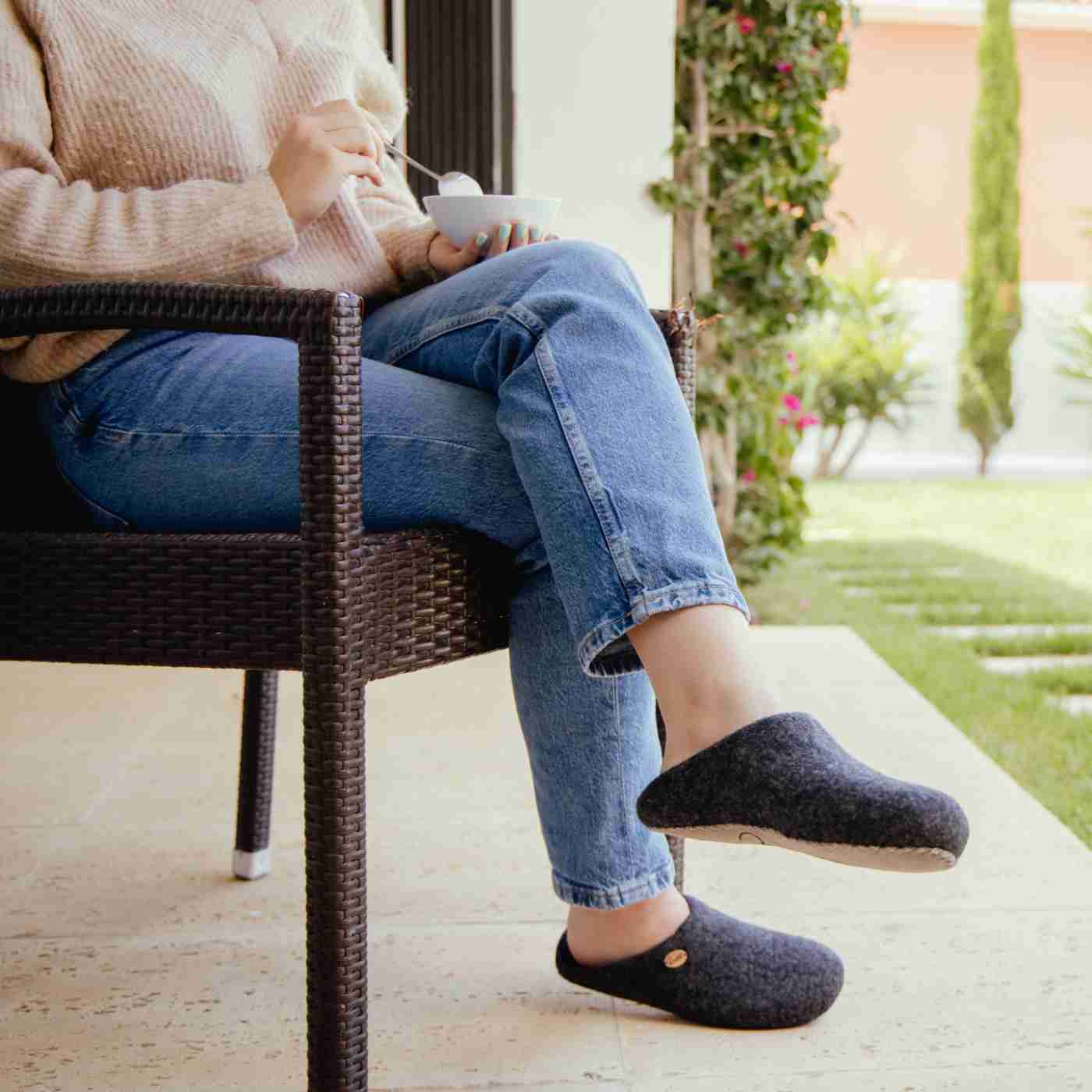 Hinten offene Filzpantoffeln ohne Fersenrand