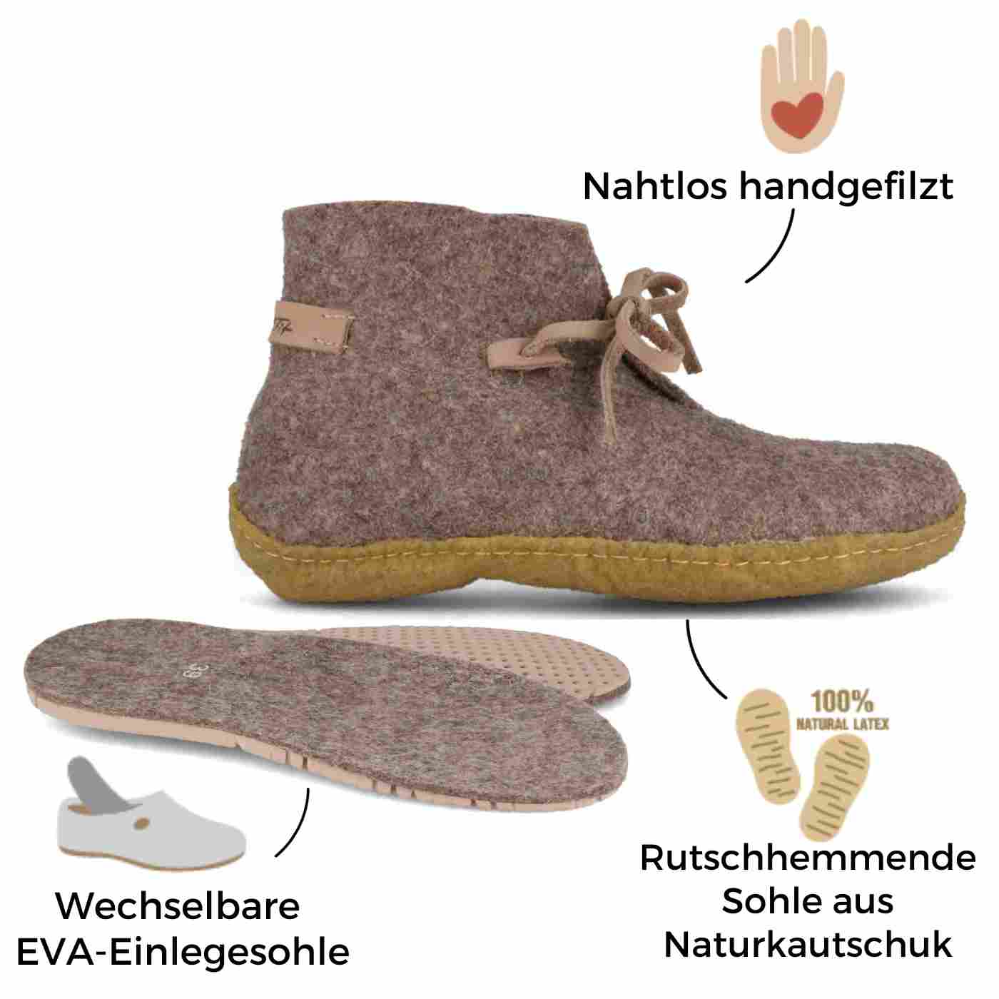 Und nicht zu vergessen, der Vitus wird nahtlos von Hand gefilzt, was ihn zur idealen Wahl für Menschen mit besonders empfindlichen Füßen macht.
